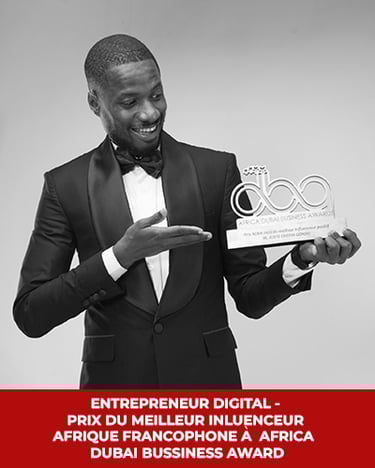 Avec une communauté digitale désormais estimée à plus de 5 millions de followers, Il a été désigné,à juste titre, MEILLEUR INFLUENCEUR D’AFRIQUE FRANCOPHONE à Dubaï Business Expo 2022.